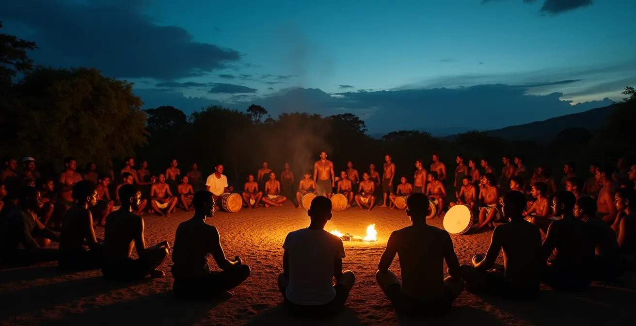 La plupart des guides vous parleront de « fête créole », de « musique traditionnelle » et d’ambiance conviviale. C’est vrai, mais c’est une vision de surface. Si la véritable clé n’était pas dans le comportement à adopter, mais dans la compréhension à acquérir ? Participer à un kabar, ce n’est pas assister à un concert. C’est entrer avec humilité dans un espace de mémoire vivante, là où chaque percussion, chaque chant est un écho direct de la souffrance, de la résistance et de la liberté reconquise des esclaves. C’est un acte spirituel avant d’être un événement culturel.